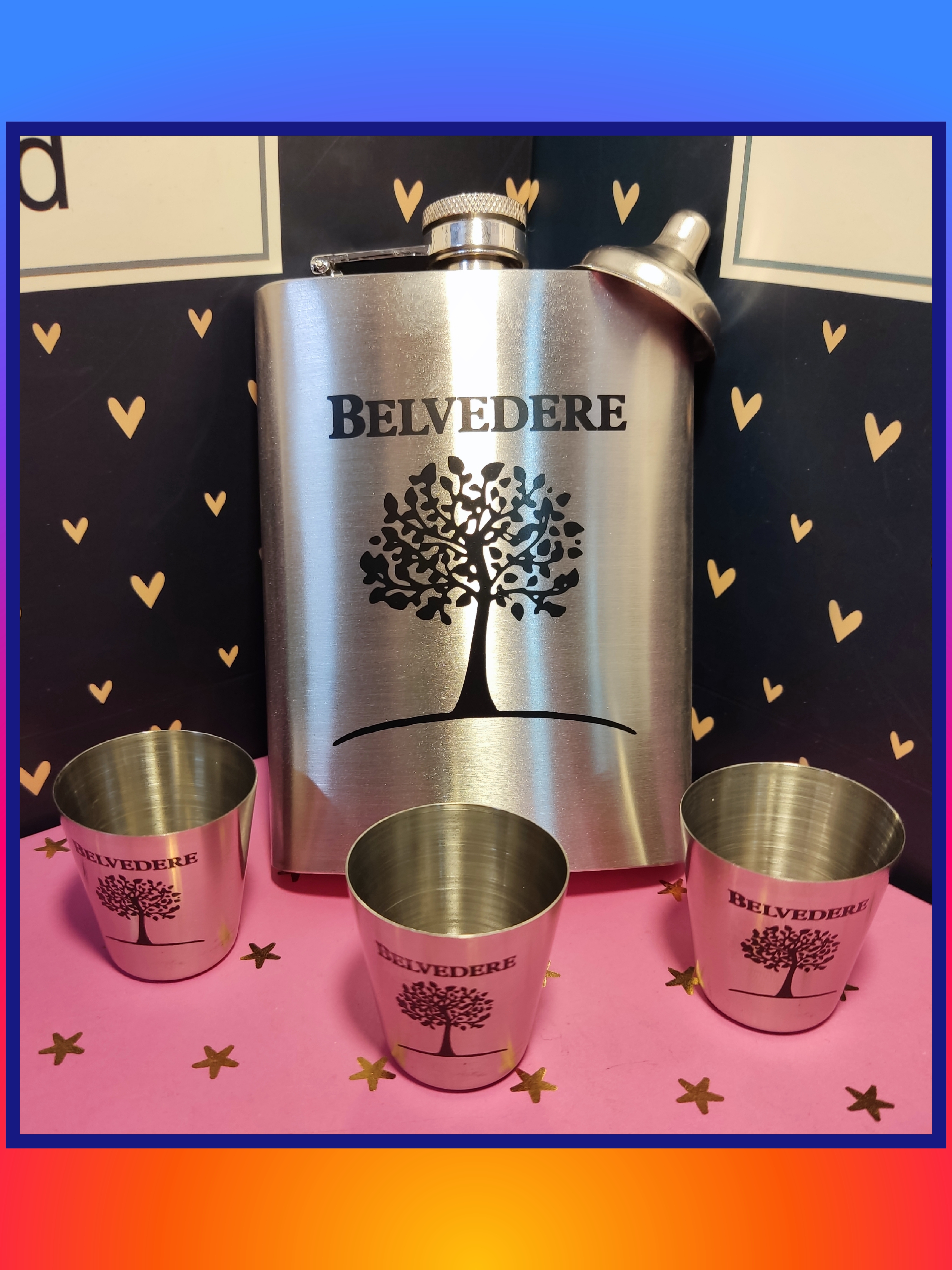 نوع محصول: ست کادویی بطری جیبی استیل به همراه شات و یخ فلزی