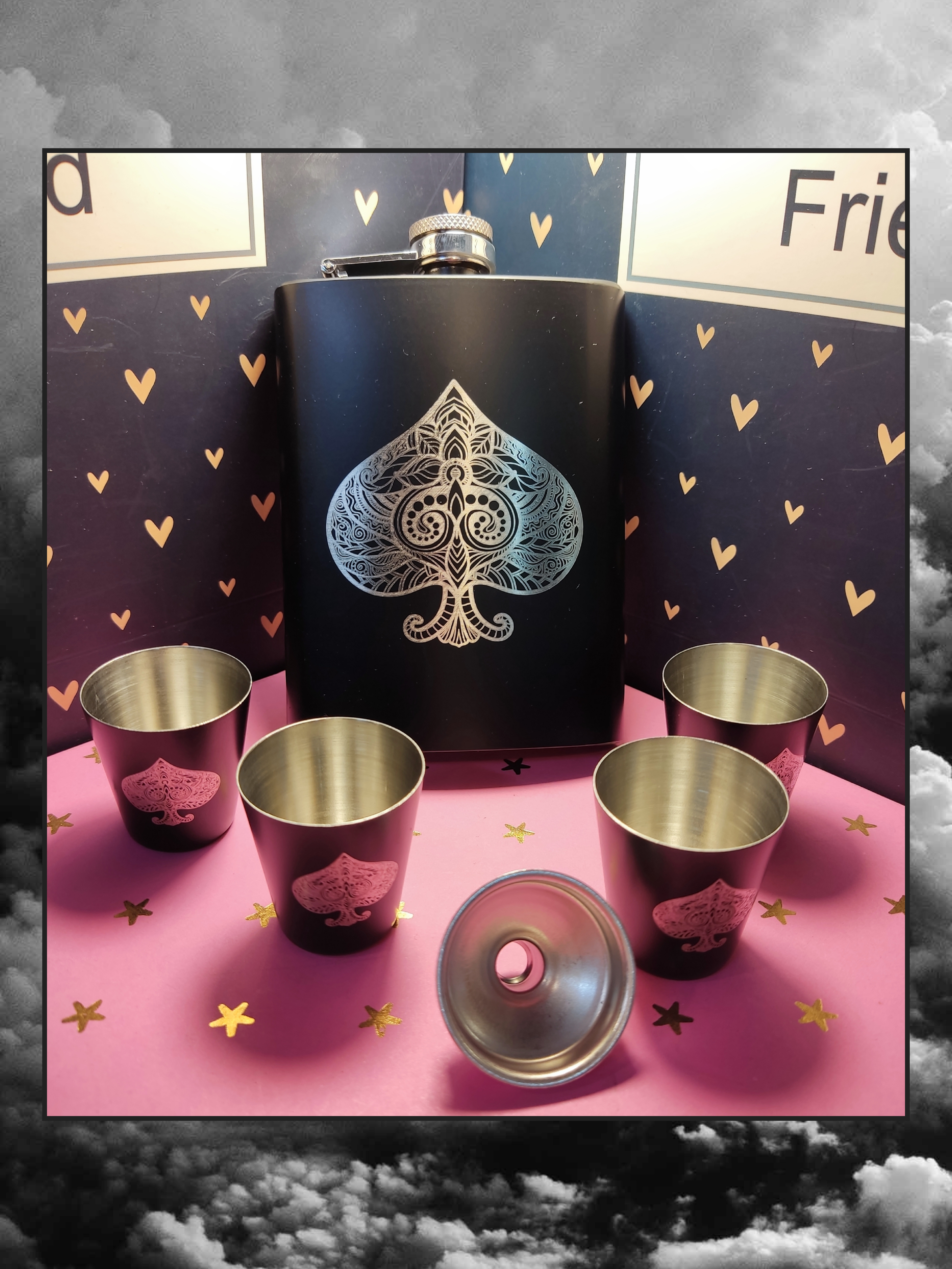بطری جیبی استیل همراه با قیف و چهار عدد شات