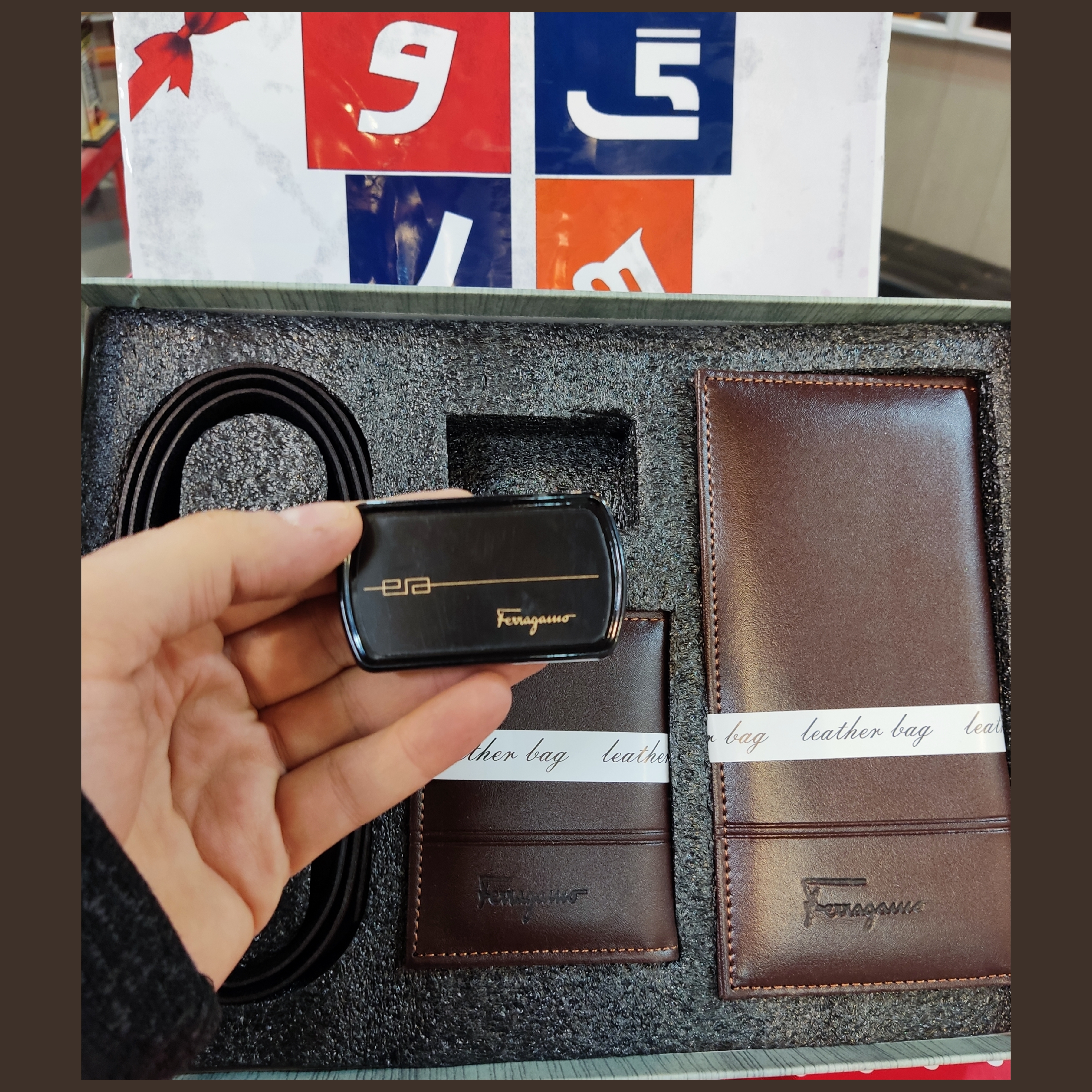 ست مردانه کیف بلند پالتویی و کمربند و جای کارت