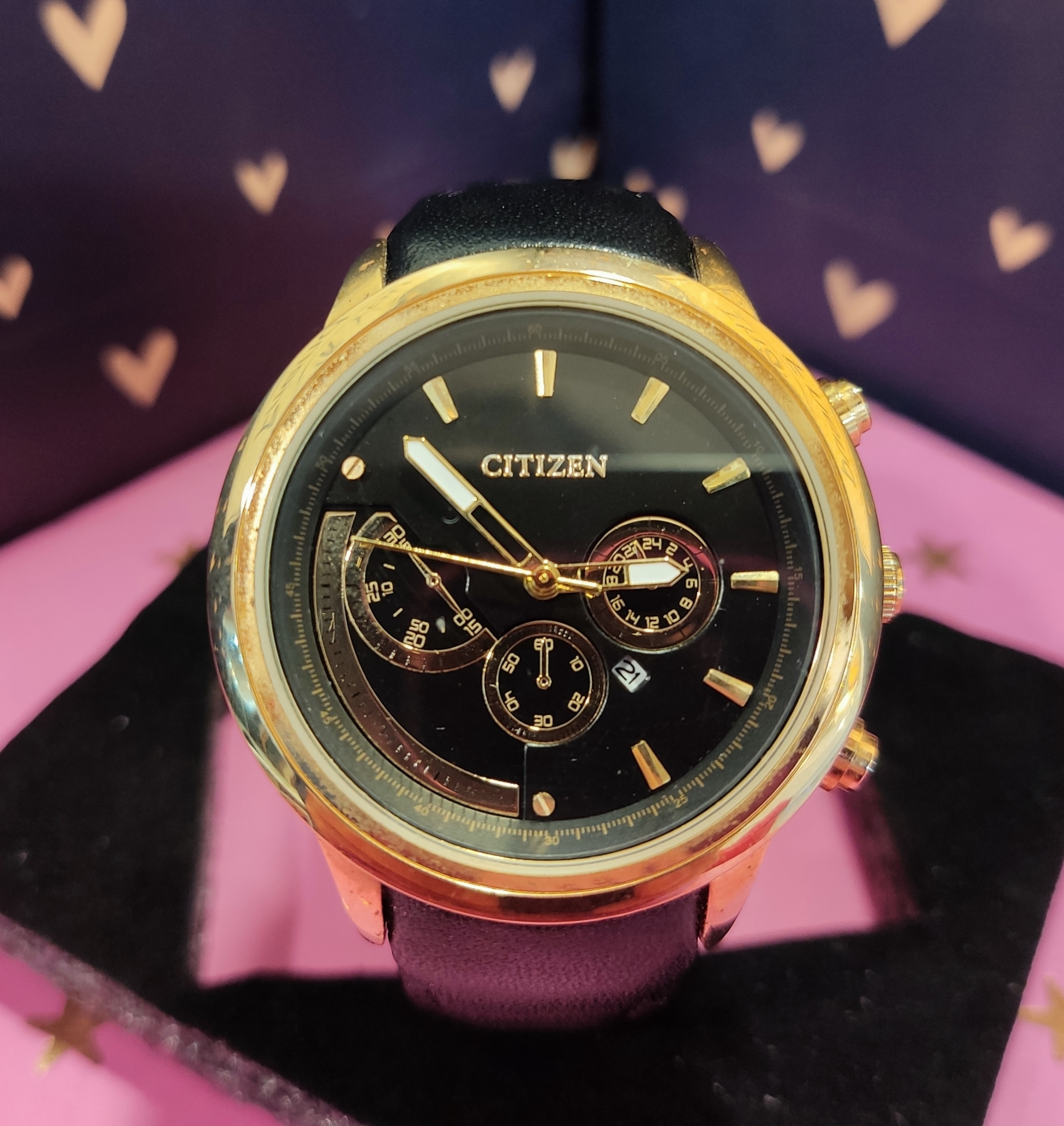 جنس دسته ساعت: چرم طبیعی مشکی با برند citizen