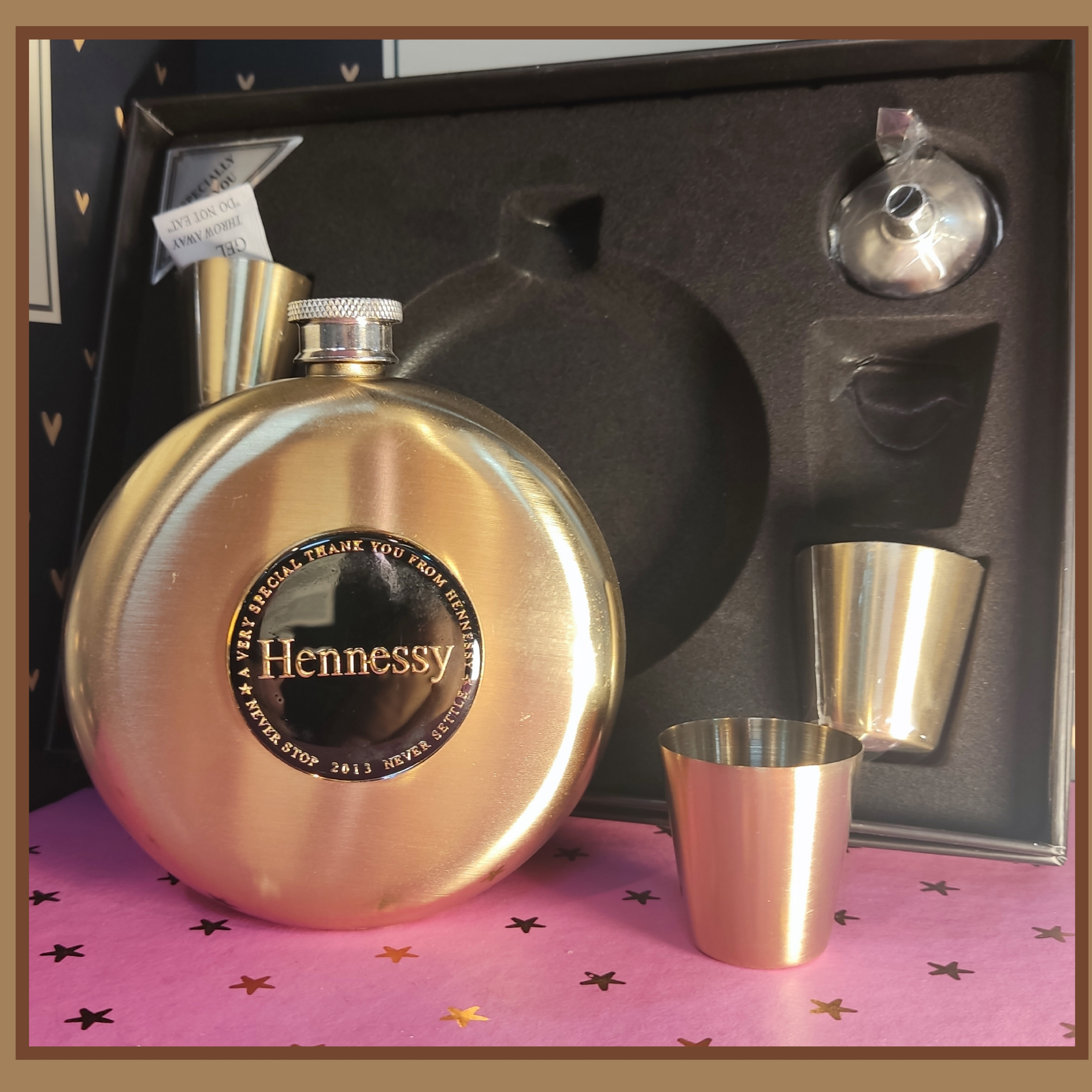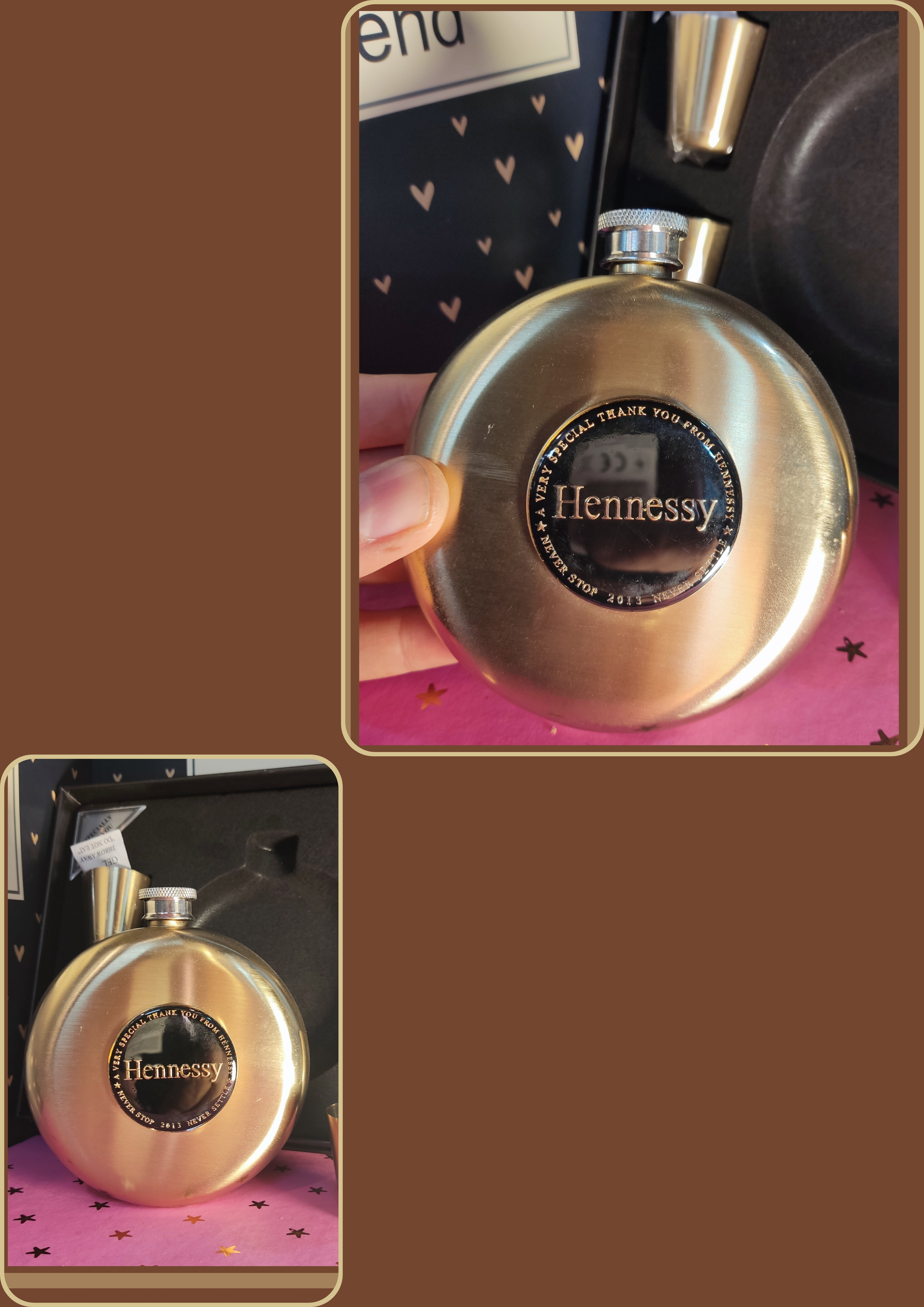 این پک شامل یک عدد قمقمه جیبی با کیفیت استیل با آبکاری طلایی میباشد