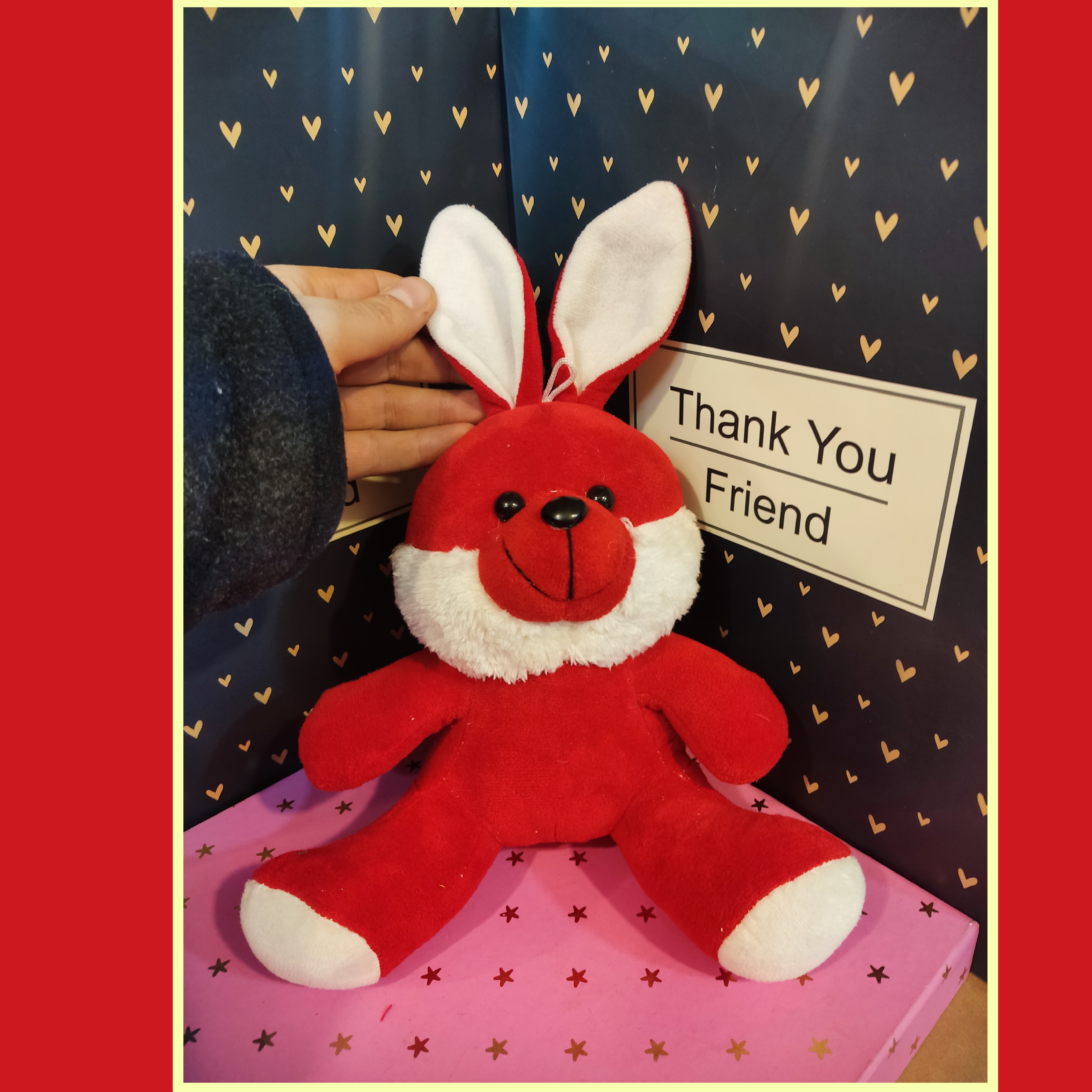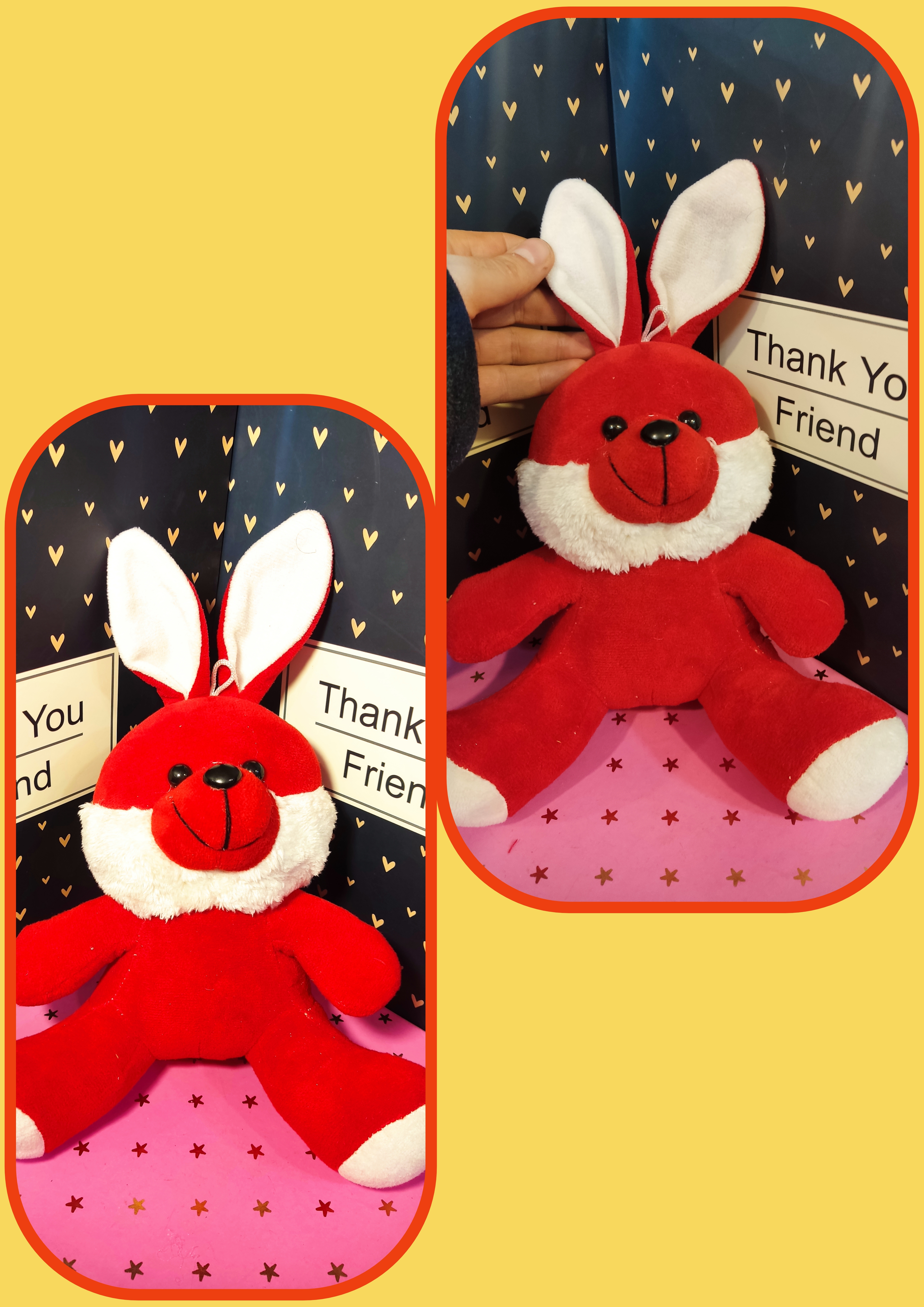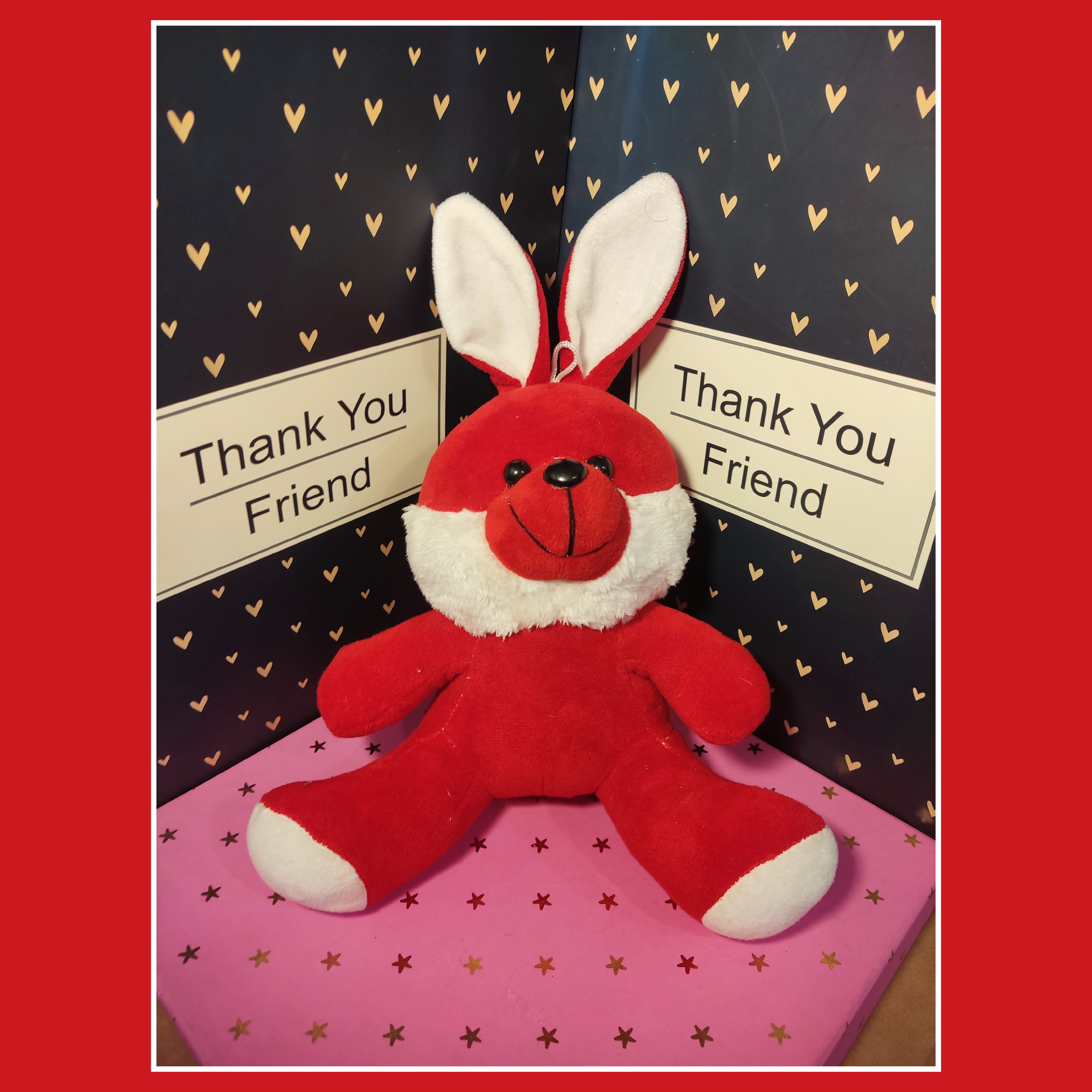 این عروسک یک خرگوش قرمز و سفید میباشد