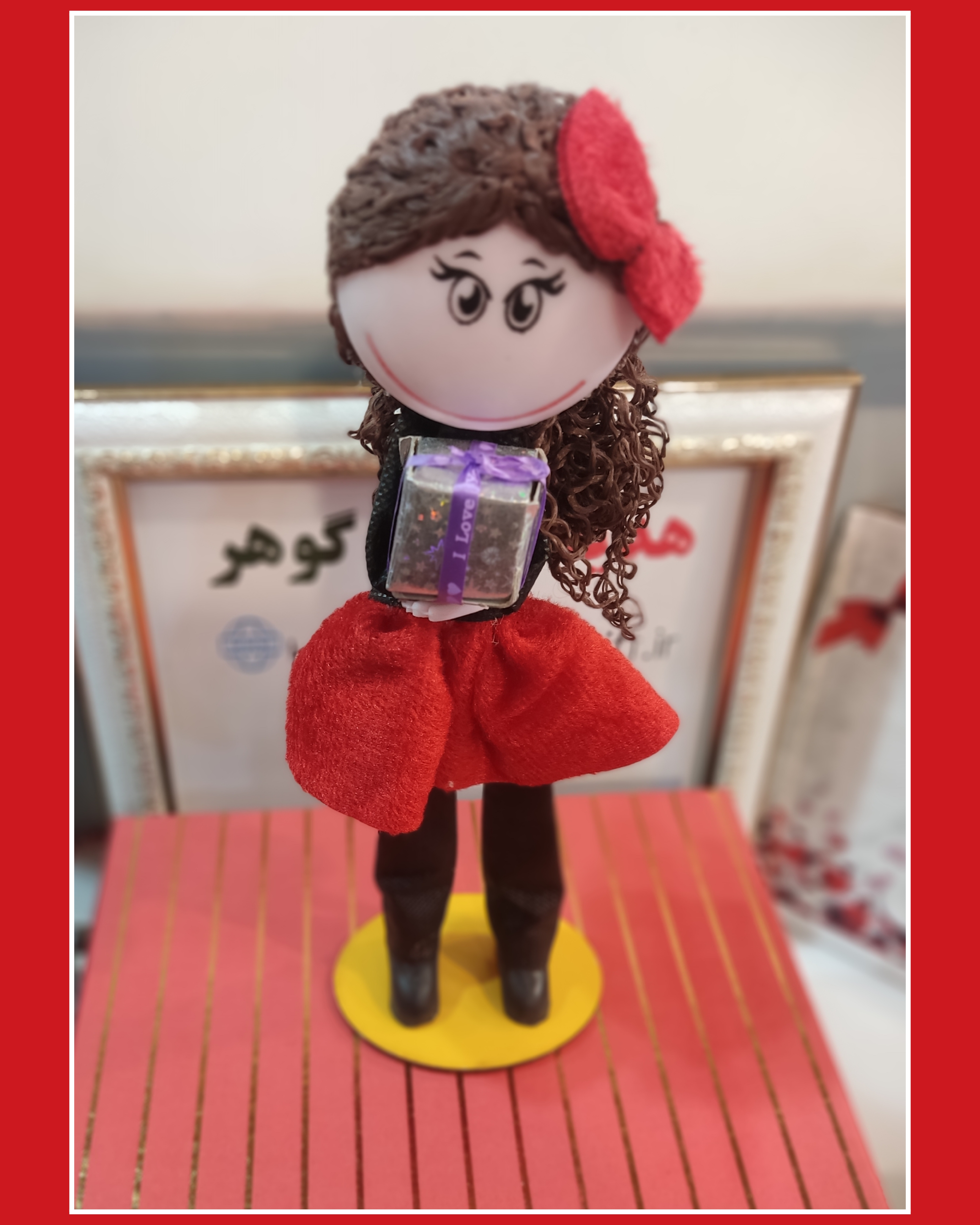 ماگ چینی طرح ولنتاینی و زیبا عروسک دختر روی میزی ۳۰ سانت