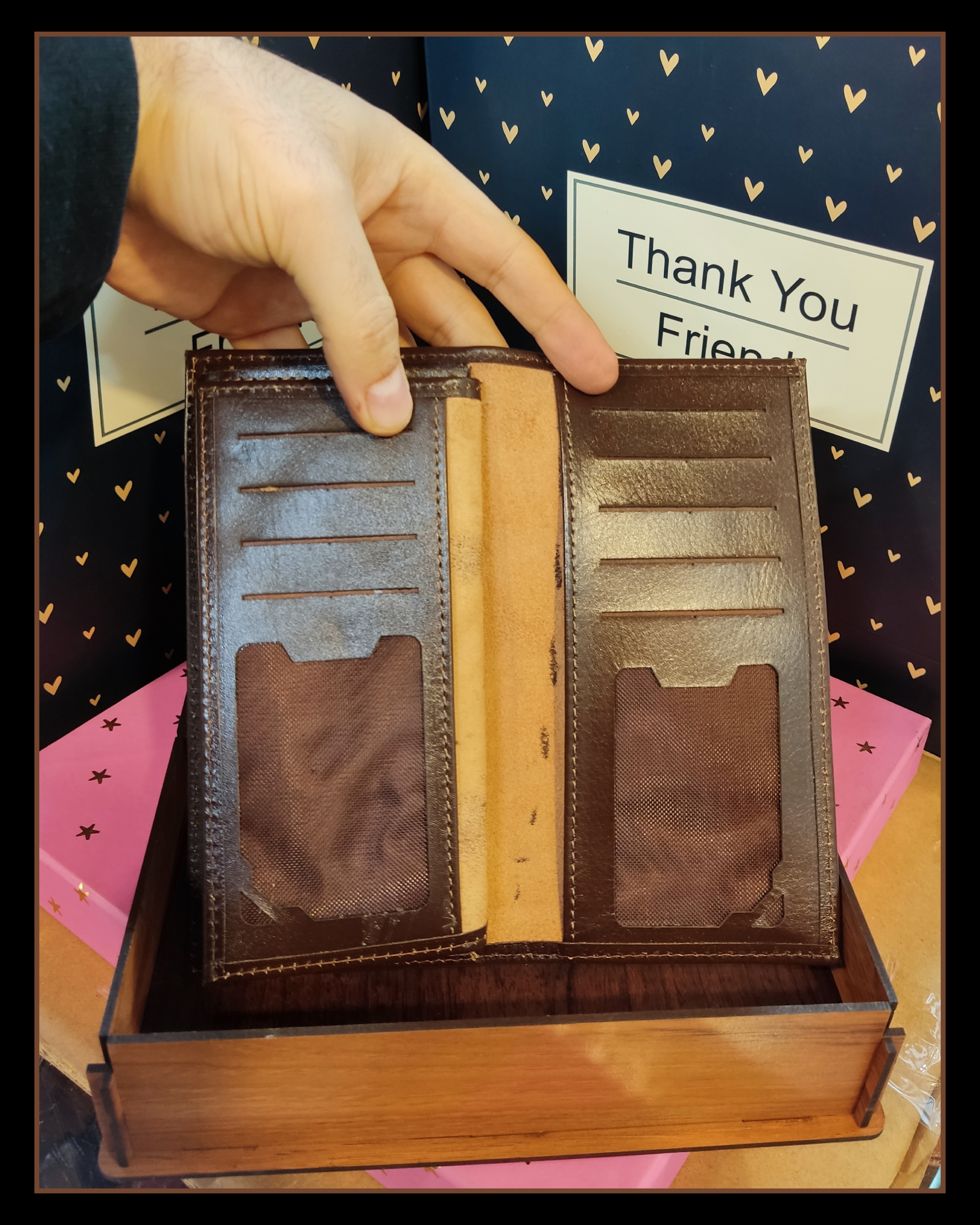 ست هدیه چرم طبیعی گاوی اعلا شامل یک عدد کیف بلند پالتویی که جای مخصوص موبایل و همچنین جای مدارک و کارت زیادی دارد و یک عدد کمربند چرم طبیعی و سگک استیل و یکجای کارتی چرم که بسیار کاربردی بوده و چهار لایه ای میباشد