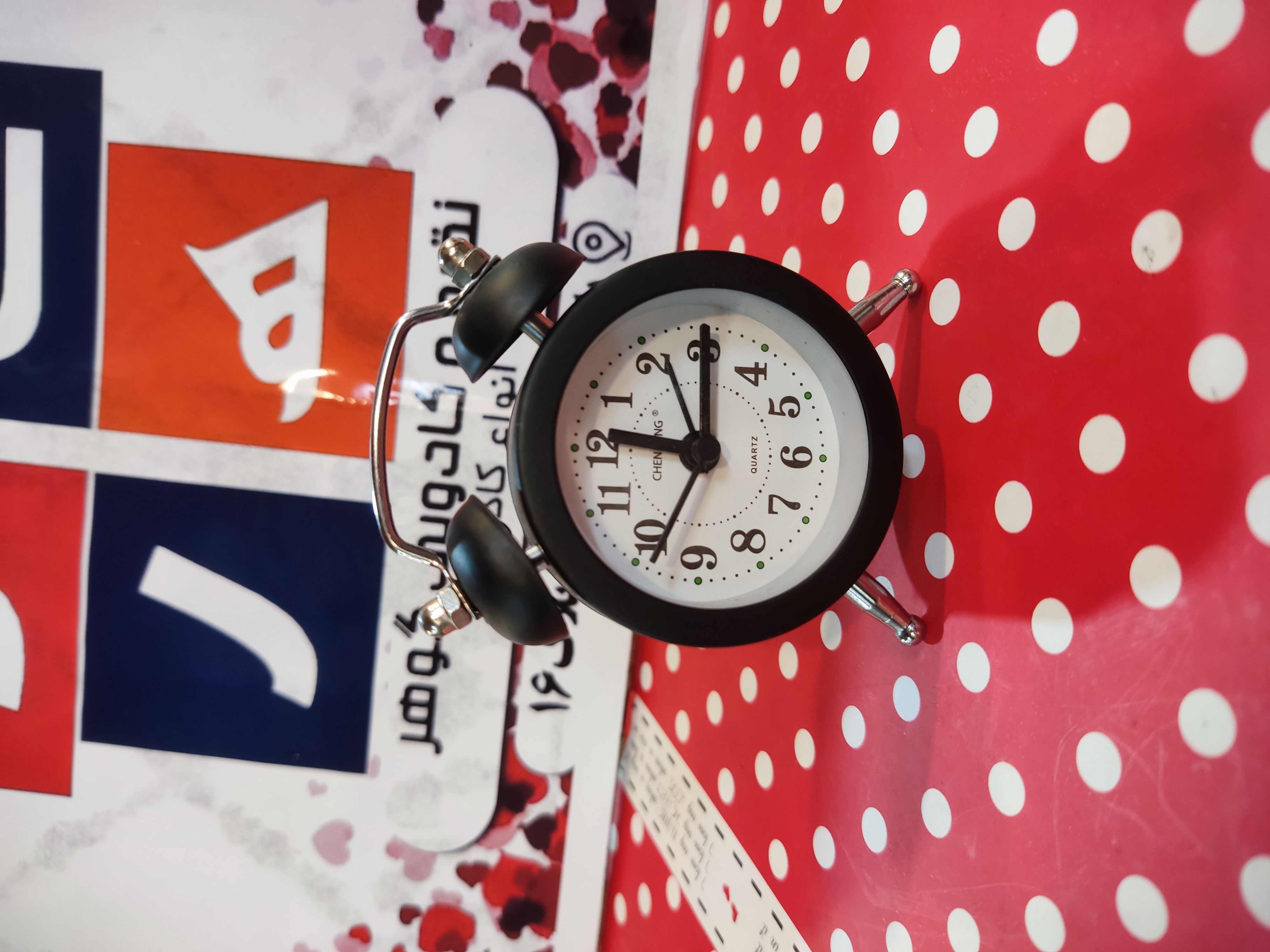 ساعت رومیزی تمام آهنی و استیل دارای دکمه نور و دید در شب نوع زنگ شماطه ای ، سایز بزرگ ۱ عدد باطری قلمی ،سایز متوسط ۱ عدد باطری نیم قلم ،سایز ریز ۳ عدد باطری ساعت