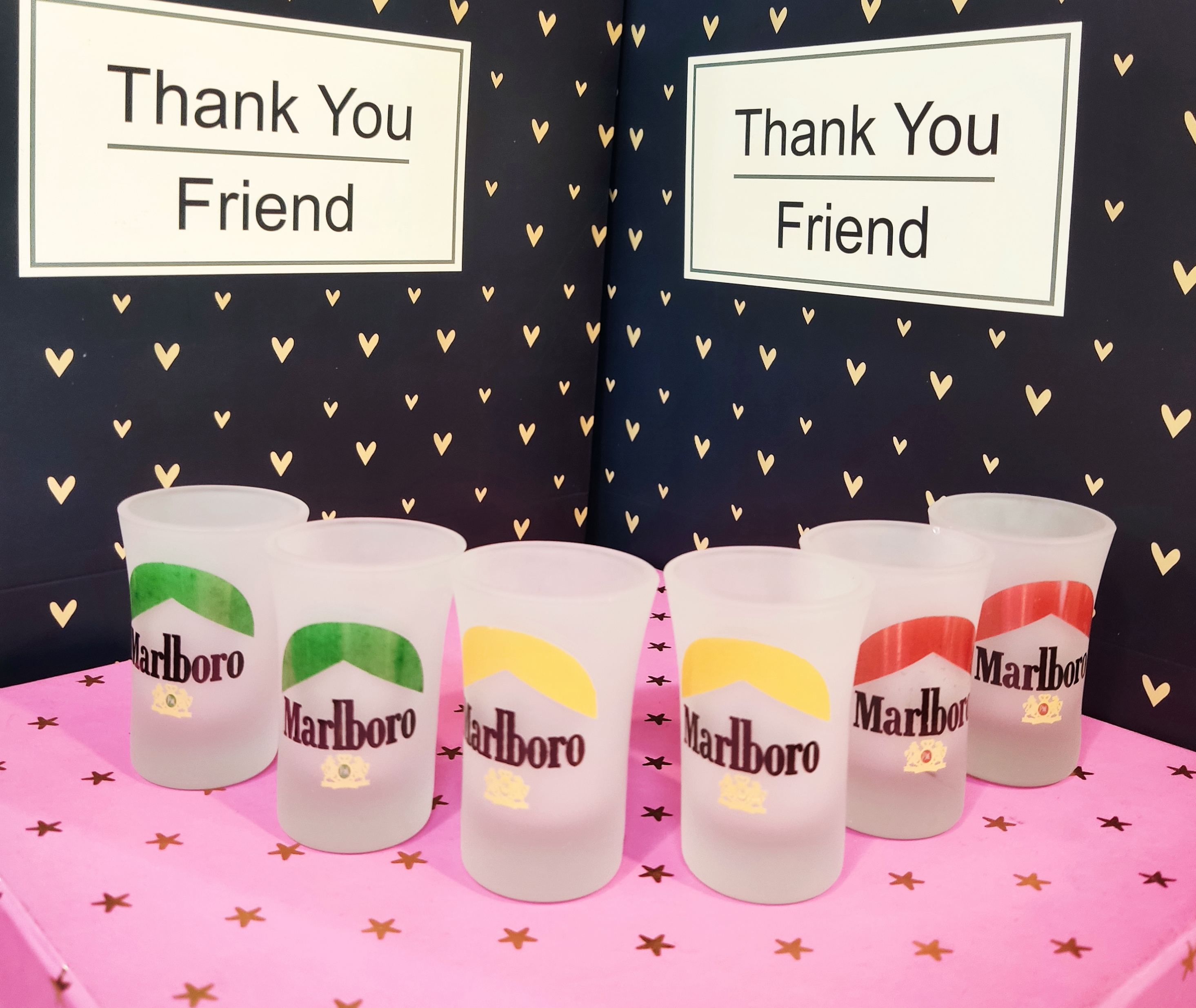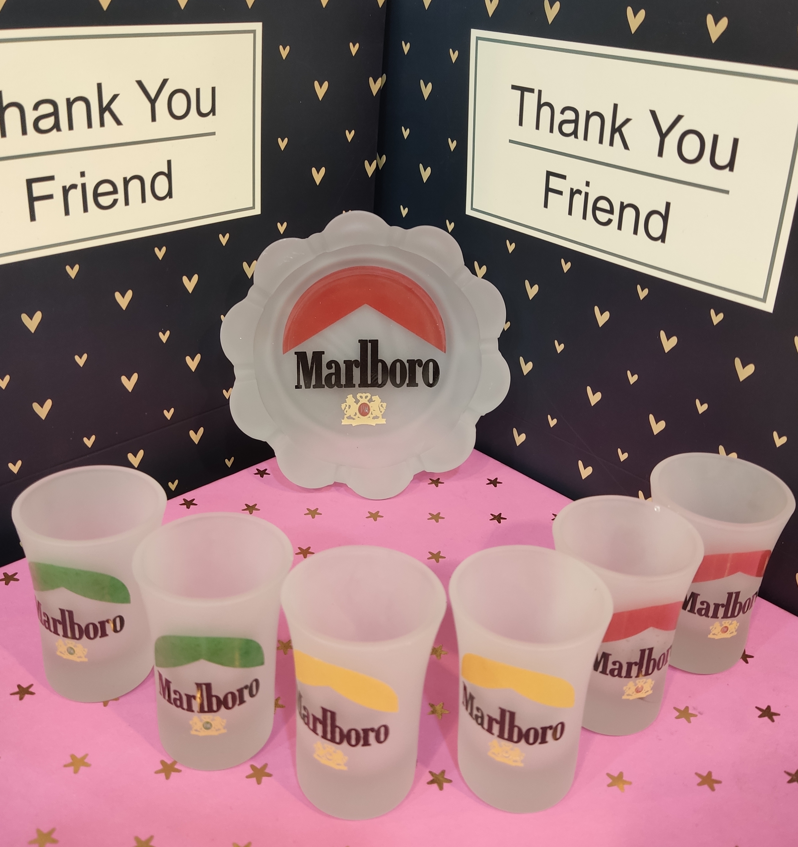 شیشه بلند و زیر سیگاری و ۶ عدد شات ماربرو